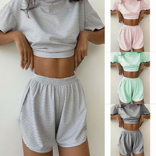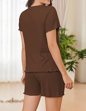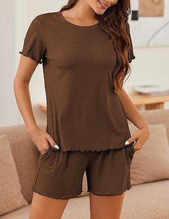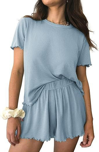 Relaxed casual crew neck short sleeve top and shorts set for women. Comfortable loungewear perfect for home, leisure, and everyday wear. Soft and stylish 2-piece set.