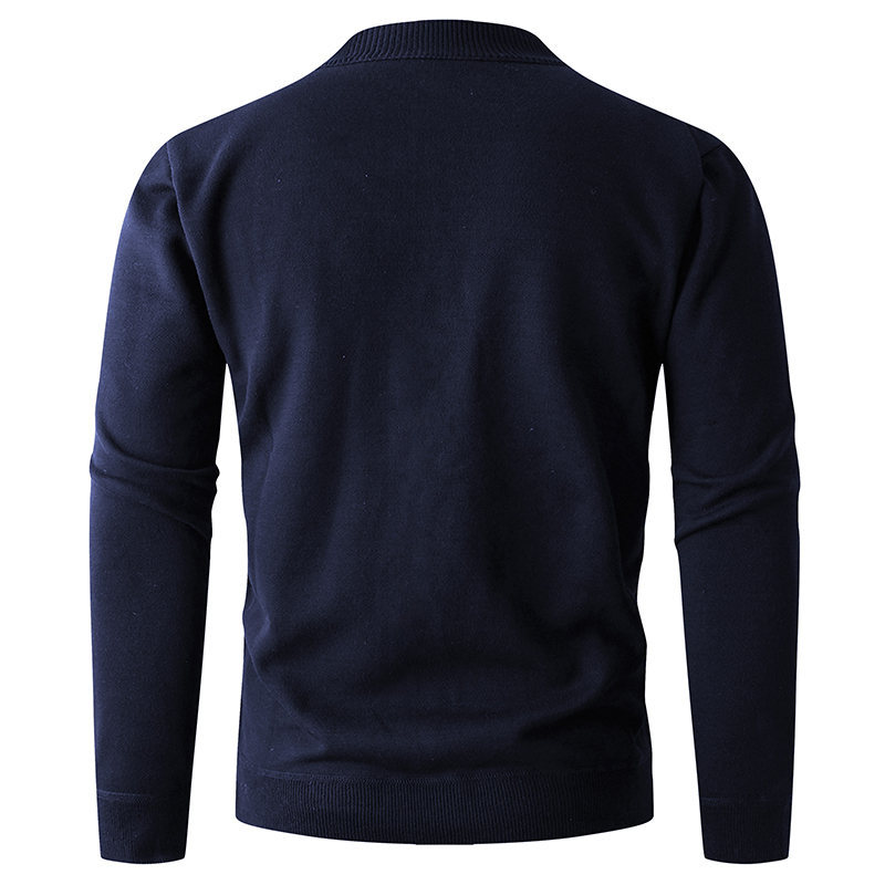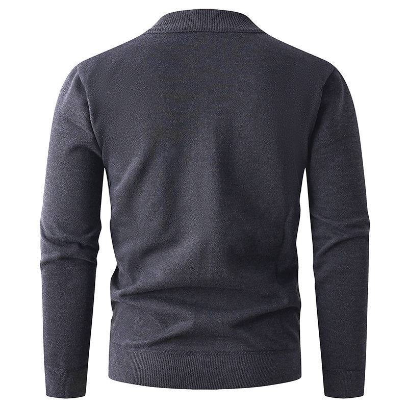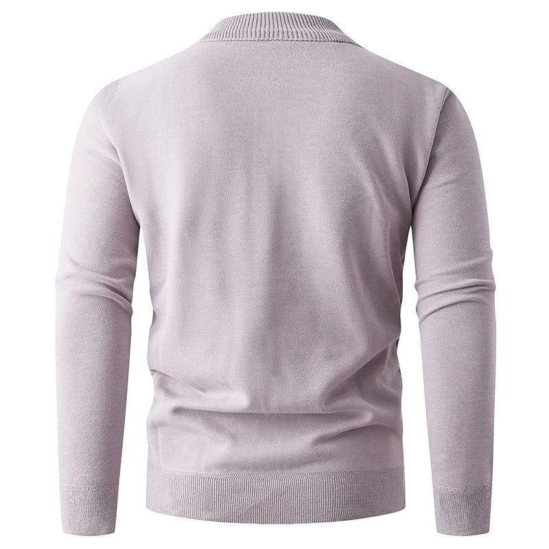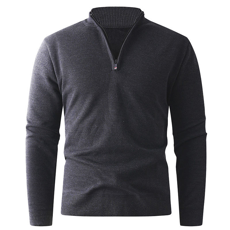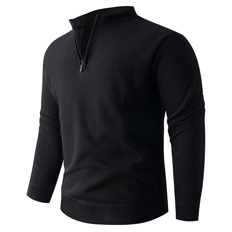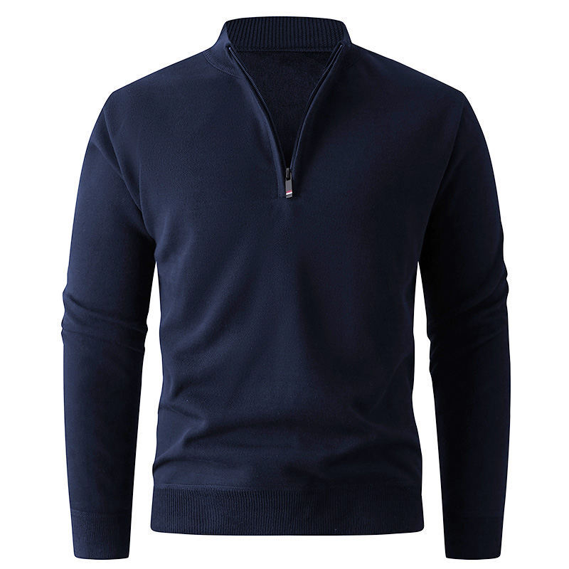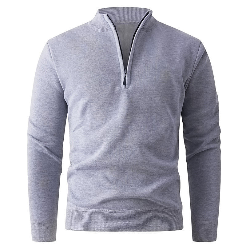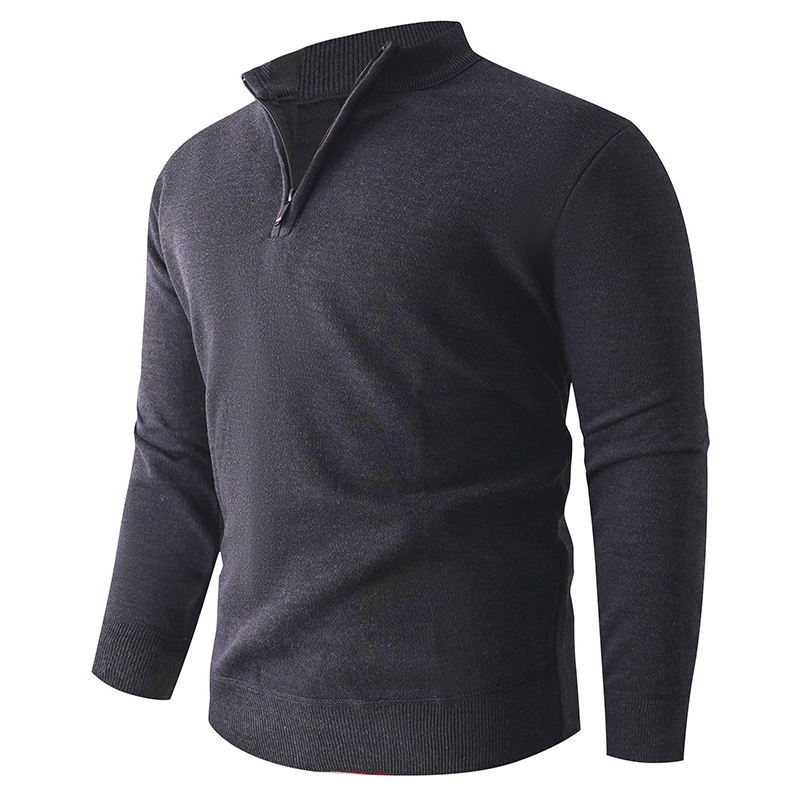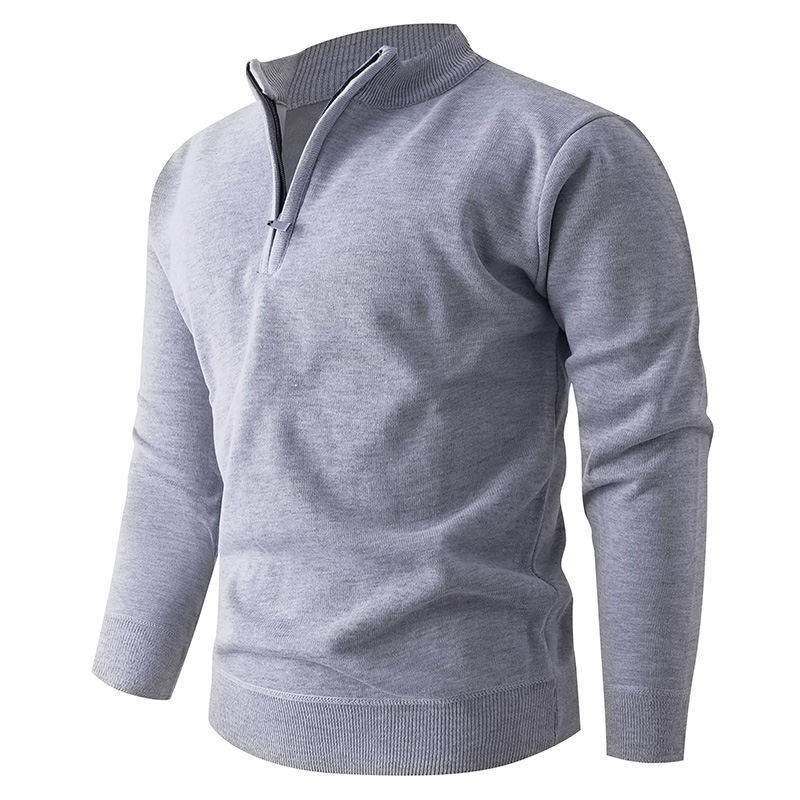 Solid color stand up collar half zip knit sweater for men. Casual pullover design perfect for layering. 580g quality construction. Available in multiple colors and sizes. Stylish knitwear.