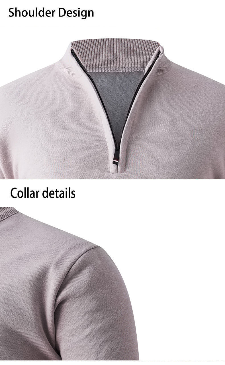 Solid Color Stand Up Collar Half Zip Knit Sweater - Men's Casual Pullover 580g | Prime Care