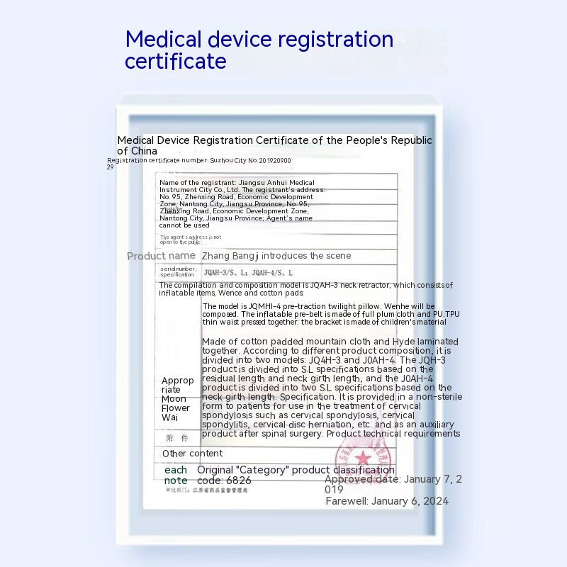 Neck traction device * 1+air cylinder * 1+instruction manual * 1+warranty card * 1+certificate of conformity * 1