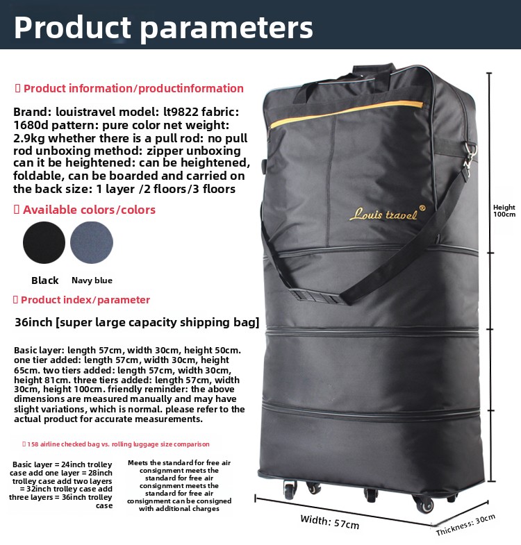 Expandable: Yes (32-inch: two-layer expansion to 75cm height; 36-inch: three-layer expansion to 100cm height)