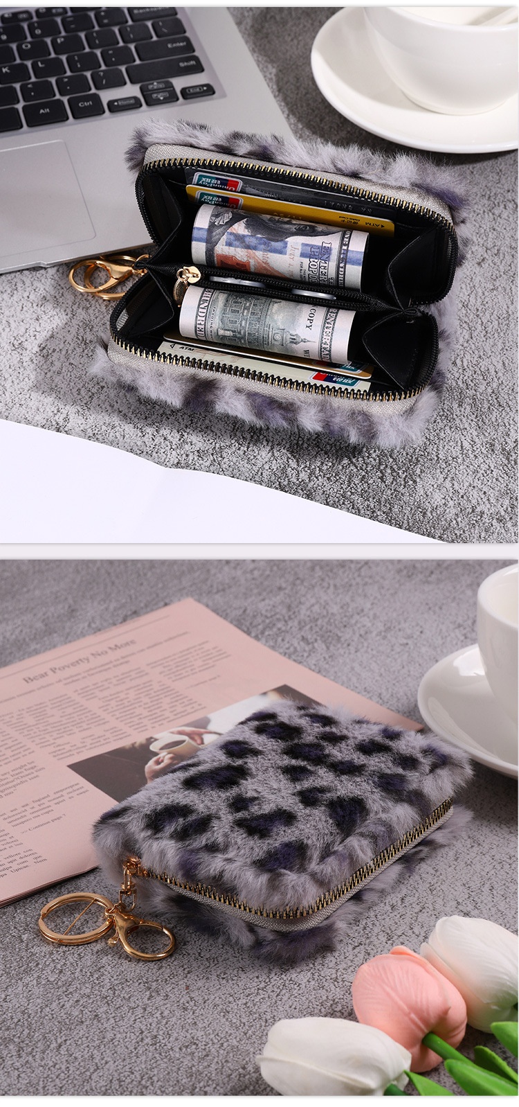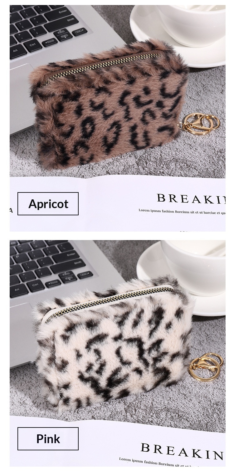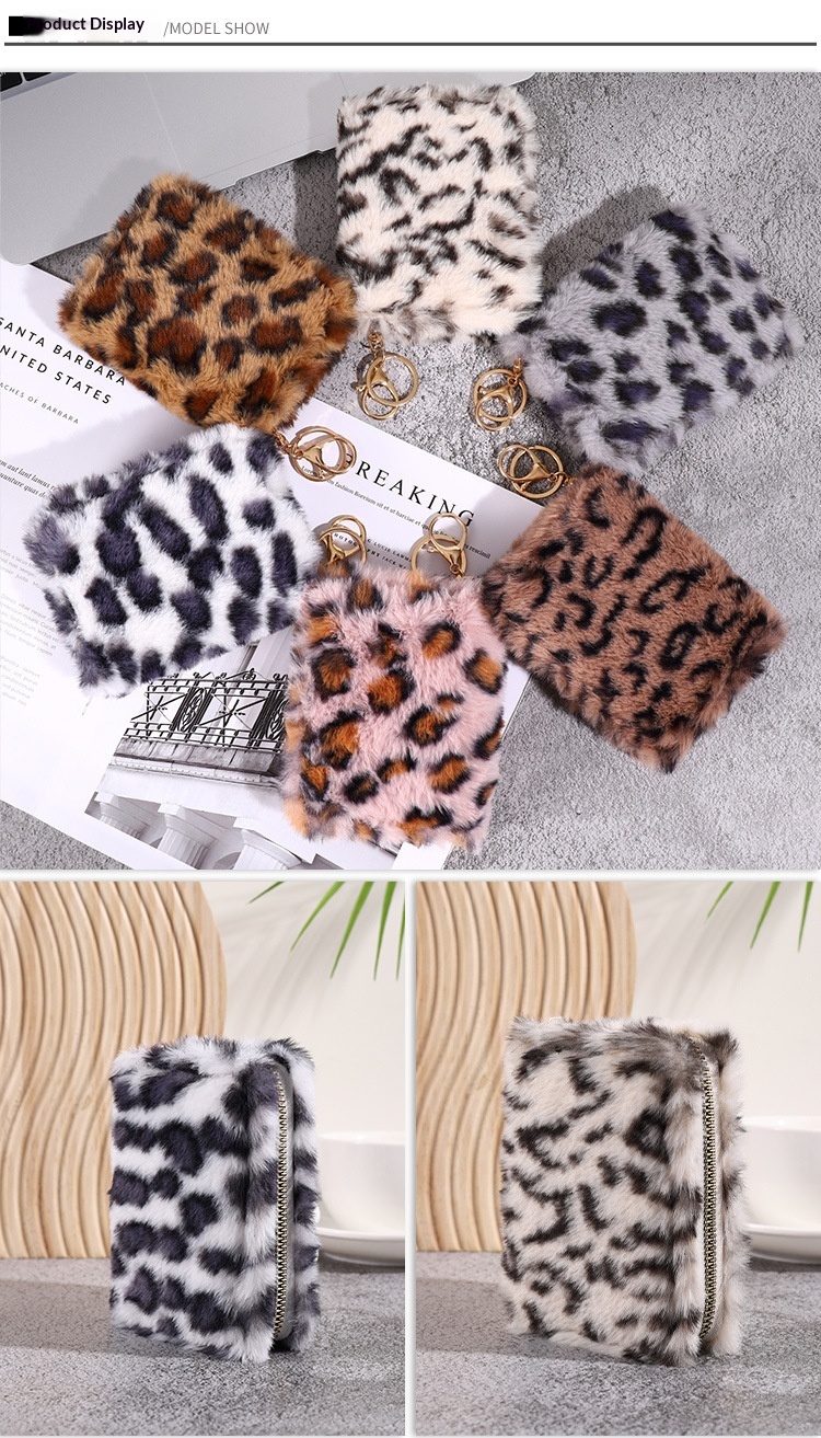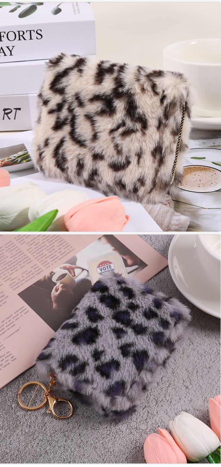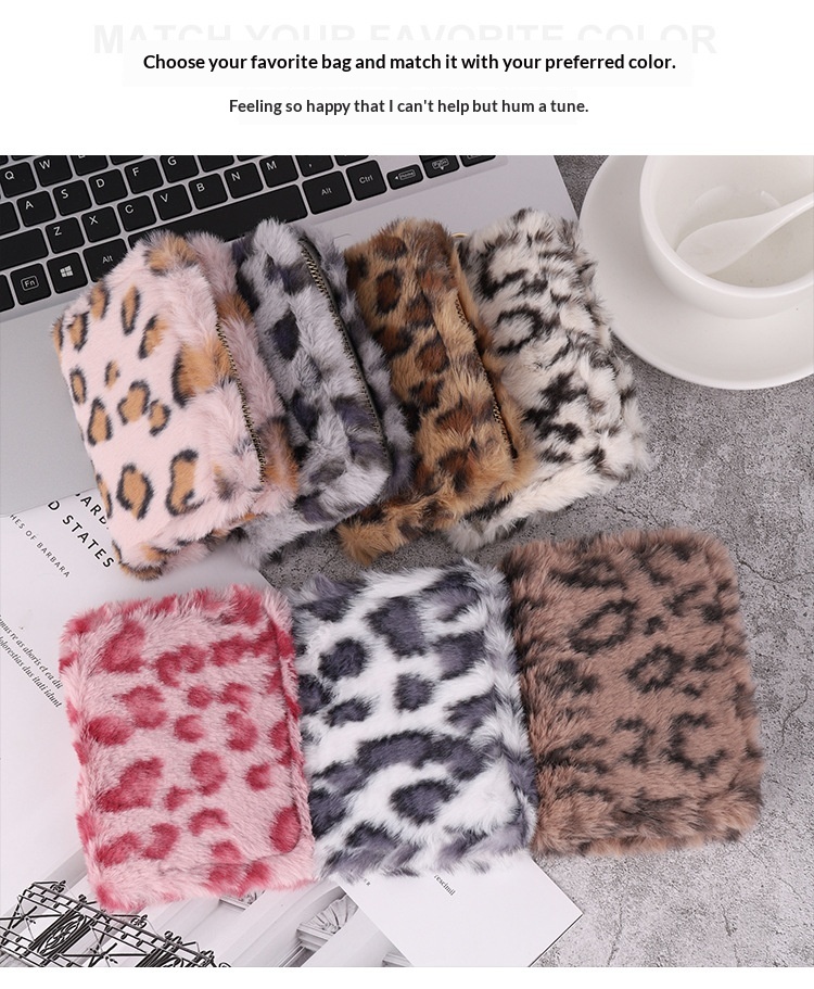 时尚小众设计毛绒零钱包,简约蓬松,带豹纹卡包