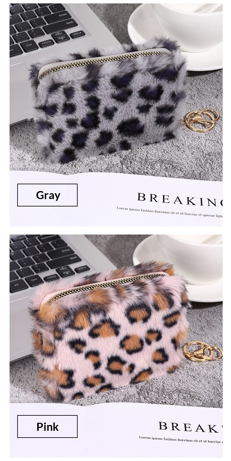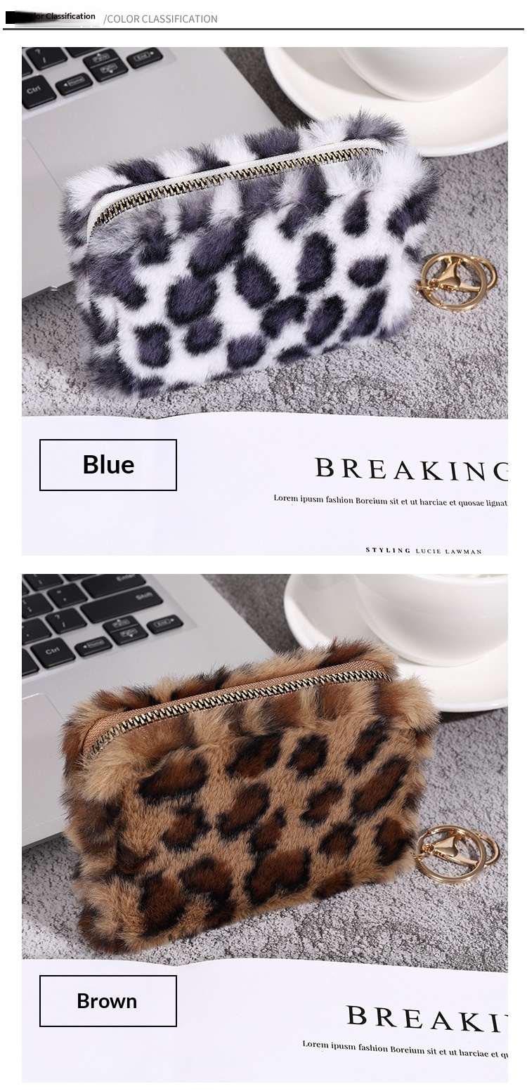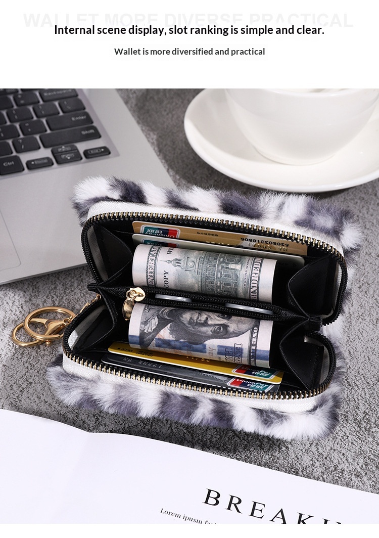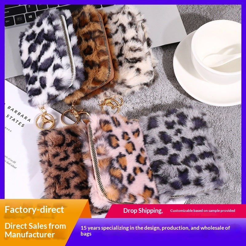 时尚小众设计毛绒零钱包,简约蓬松,带豹纹卡包