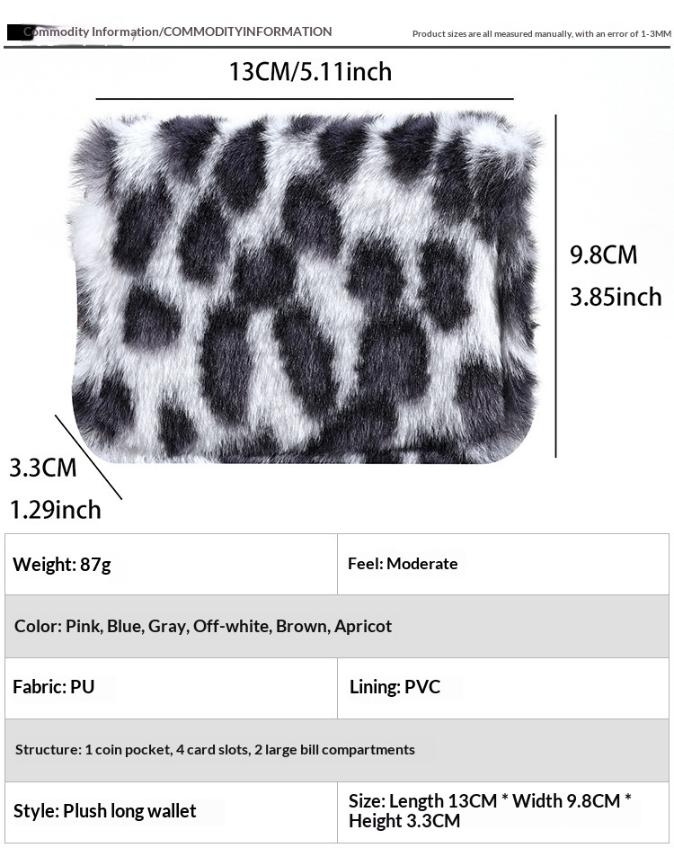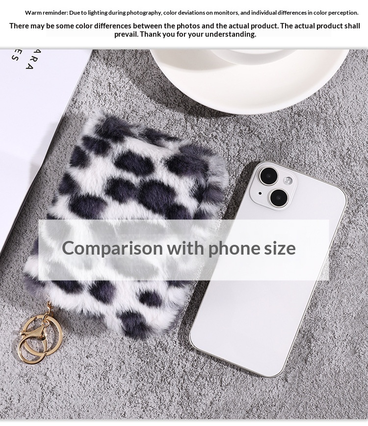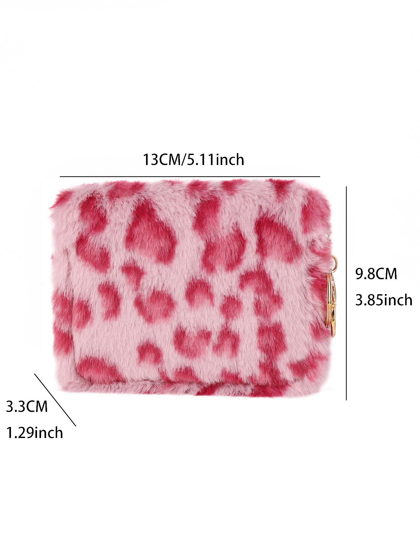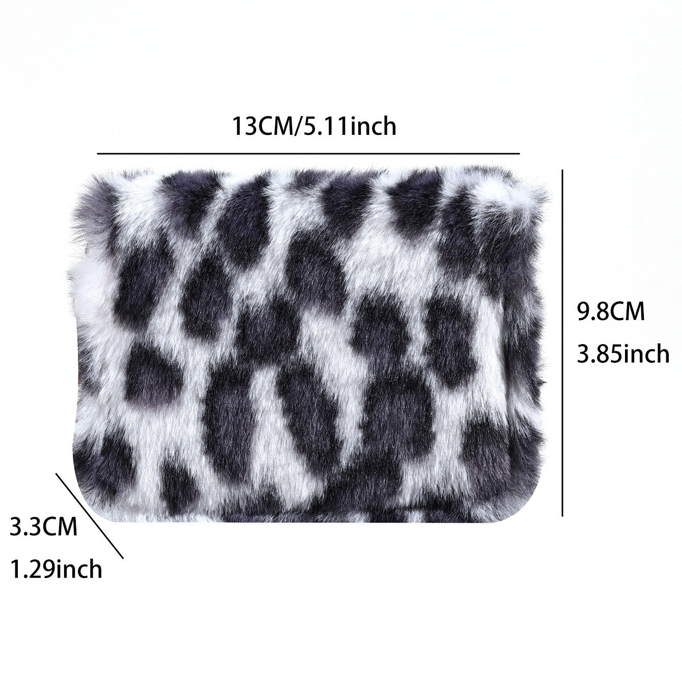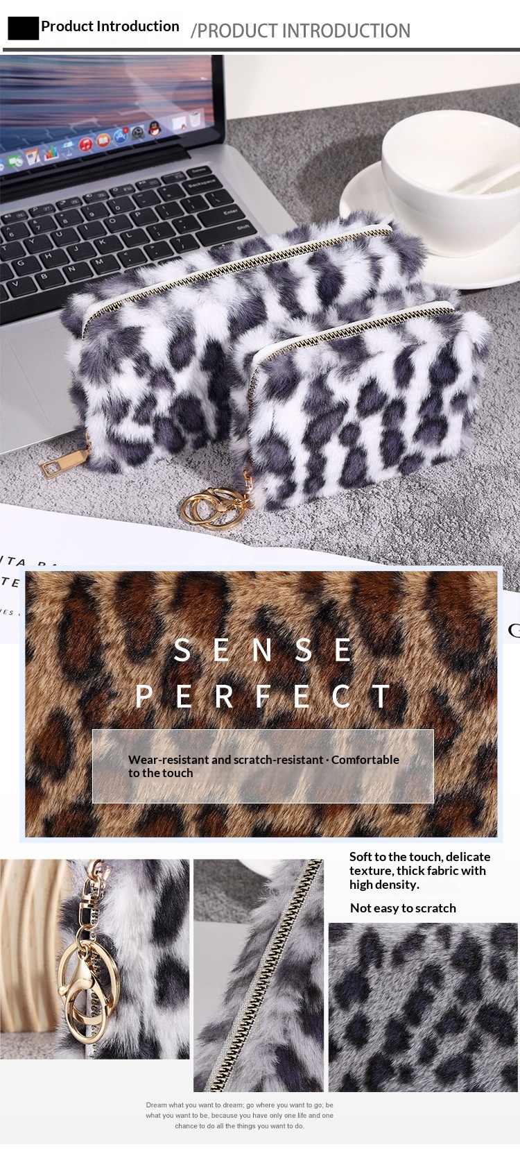 时尚小众设计毛绒零钱包,简约蓬松,带豹纹卡包